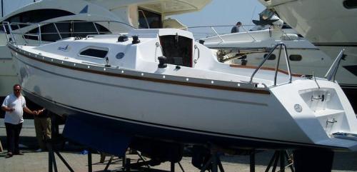 Fiberglass female mold, into the F215 jelcoat on the 2nd floor, felt and knitted glass fiber, polyester marin188 saturating, hand lay-up method, processed, fortified with FIBERGLASS Epoxy to hull and deck sections.