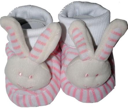 Mon premier hochet-Chaussons Lapin Rose rayé