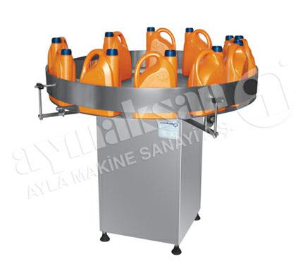 Rotary table on the left by the operator irregular bottles, cans or boxes, the rotation speed can be adjusted with the help of elements of the routing table and mounted on the conveyor is fed onto the host machine. However, according to the intended use of the packaging tray collected on conveyor. With this machine, filling machine and capping machine capping machine, labeling machine, conveyors or conveyors can also be used as a stacker tray. Sets the minimum number of features the use of different packages to work, are quick and easy. Machine şaselerinde standard practice epoxy coated AISI 304 SS St. on the profile as a dress made of hair. All parts in contact with product are made of AISI 304 SS or as required by the product. With the support of standardized and machinery spare parts in stock for many years without problems, without the need for external service works. Ex-proof equipment and hardware options. Enhanced protection for ex-proof area.