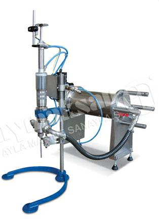 In particular mascara, liquid lipstick, foundation and similar semi-liquid products, volumetric filling system, creating a semi-automatic filling machine air gap in the packaging. Manually by the operator tipped nozzle attached to the end of a long hollow tubes. Due to the design the cleaning process is carried out quickly and easily. The machine gives performance results, especially in the cosmetics industry.