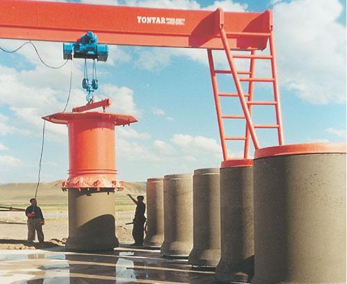 Bu makinalarda anma çapı ø500mm'den 3600mm'ye kadar normlara uygun muflu ve mufsuz beton borularla, dört köşeli menfezlerin üretimi yapılır.Bu makinalar, hidrolik baskı kafası, iç kalıp platformu, hidrolik ünite, vibratör soğutma ünitesi, kumanda panosu ve beton verici bunkerlerden oluşur.Bu makinalarda üretilen beton borular makinadan bir gezer köprülü vinç vasıtasıyla alınır. Firmamızda yüksek tonajlı vinçlerin imalatıda yapılır.Bu seride üretilen makinalar 5 ayrı tip ve kapasitede üretilir.